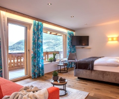 Inmitten der aufsehenerregenden Bergkulisse, zwischen Kanzelwand und Ifen, fügt sich das Hotel harmonisch..