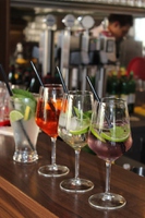 Unsere wagemutige, raffinierte Kaffee-Tagesbar verwandelt sich abends in eine dynamische, vibrierende und ene ...
