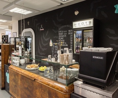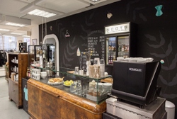 Kleines cooles Cafe mit Radlager und Boutique in der Reindorfgasse im Block 44
